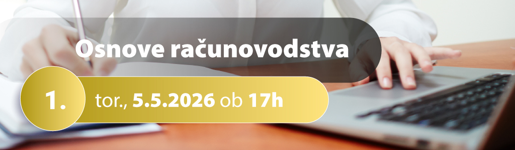 - 1. Osnove računovodstva - torek, 5.5.2026 od 17:00 do 20:00 ure: