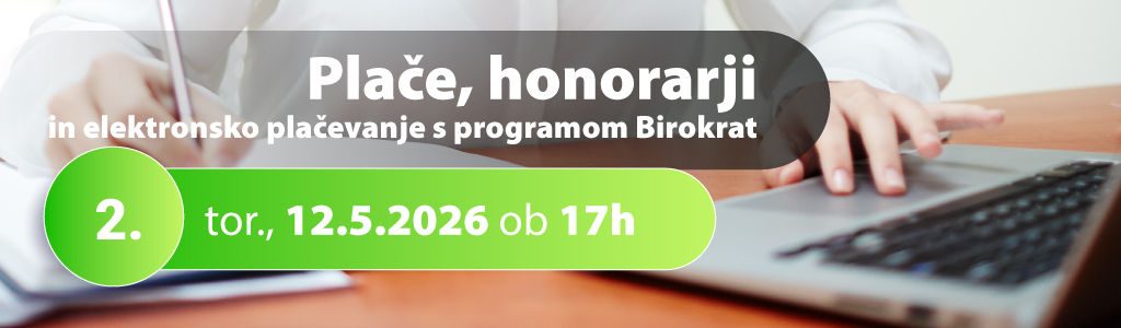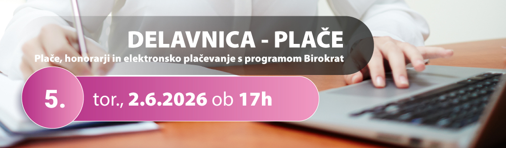 - 5. DELAVNICA - PLAČE - Plače, honorarji in elektronsko plačevanje s programom Birokrat - torek, 2.6.2026 od 17:00 do 20:00 ure:
