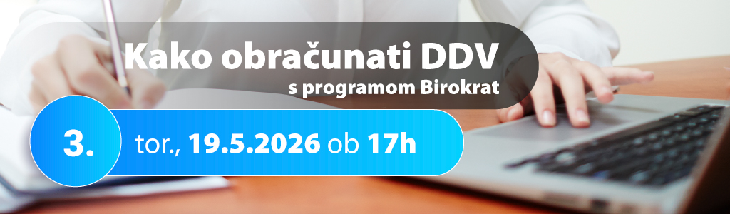 - 3. Kako obračunati DDV s programom Birokrat - torek, 19.5.2026 od 17:00 do 20:00 ure: