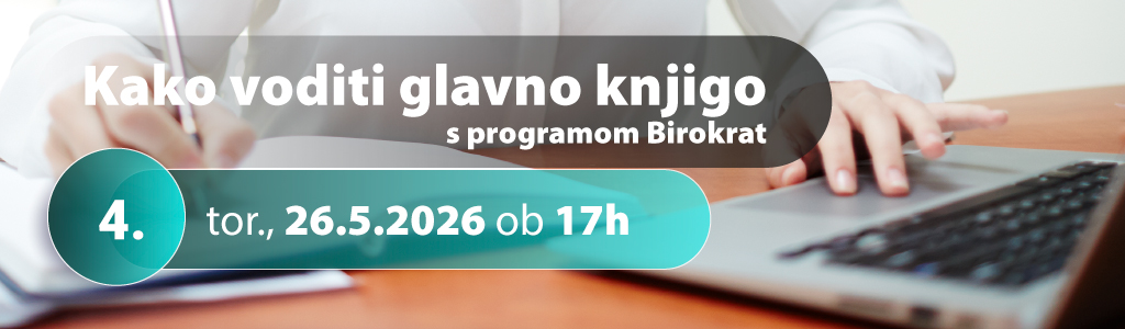 - 4. Kako voditi glavno knjigo s programom Birokrat - torek, 26.5.2026 od 17:00 do 20:00 ure: