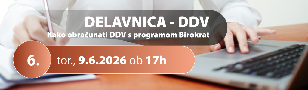 - 6. DELAVNICA - DDV- Kako obračunati DDV s programom Birokrat - torek, 9.6.2026 od 17:00 do 20:00 ure: