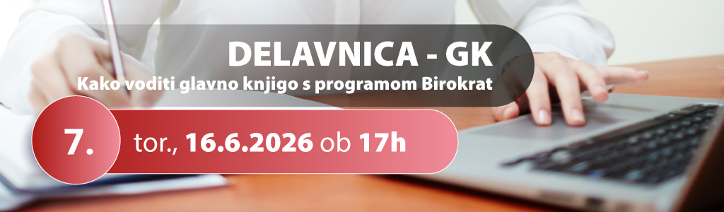 - 7. DELAVNICA - GK- Kako voditi glavno knjigo s programom Birokrat - torek, 16.6.2026 od 17:00 do 20:00 ure: