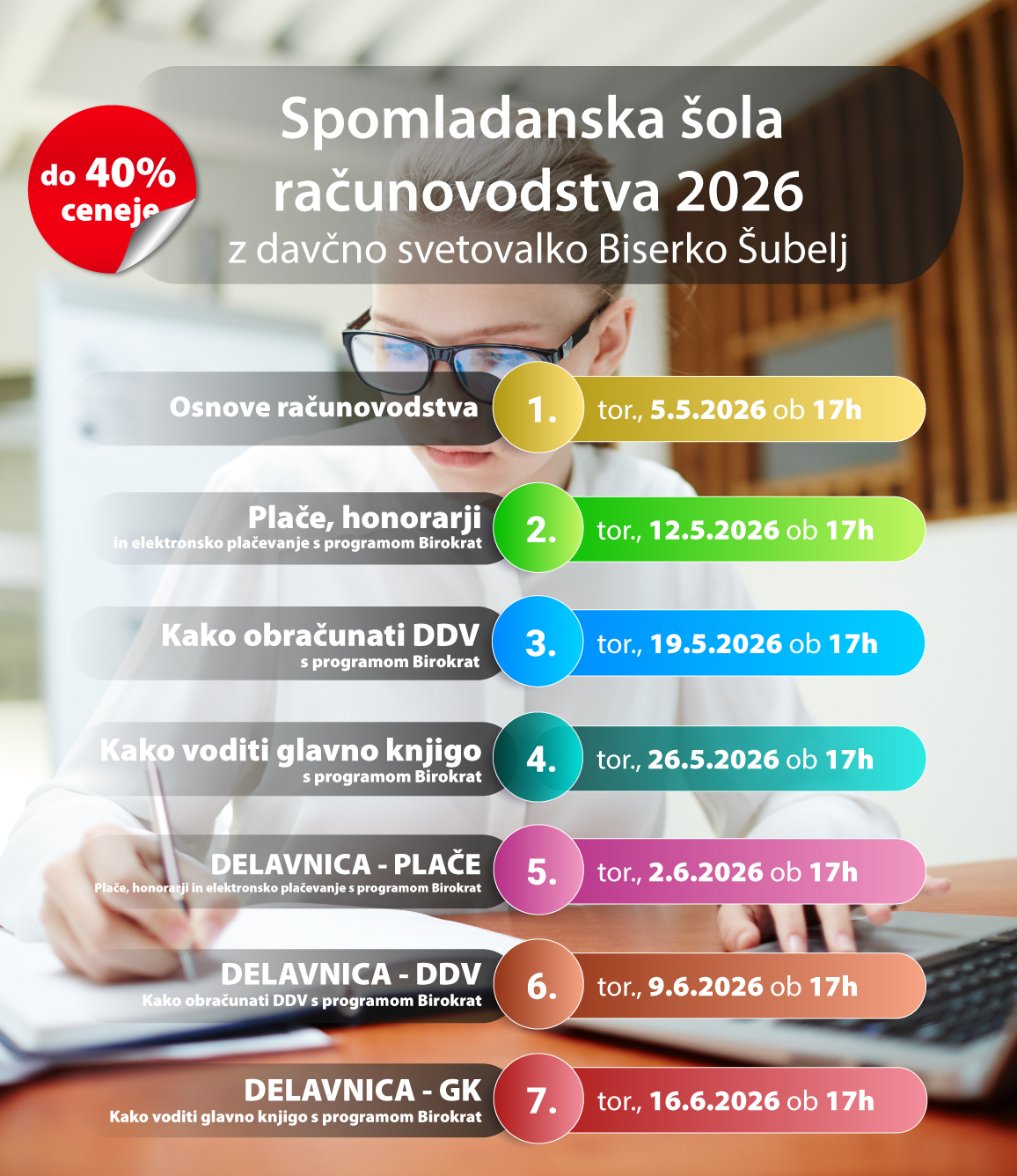 vam nudimo do 40% popusta v kolikor se na izobraževanje prijavite pred 31.3.2026.