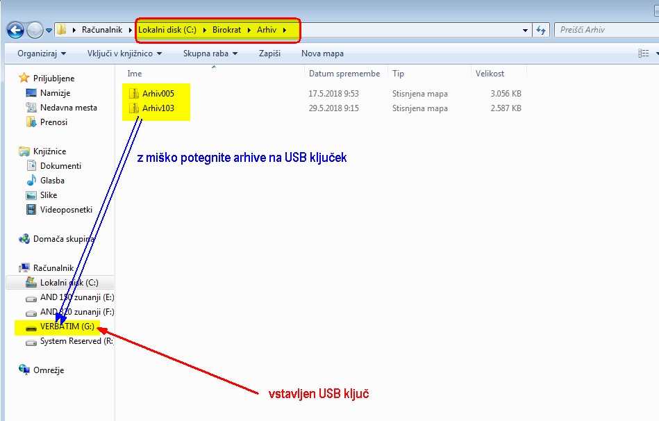 1. Ročno dodatno arhiviranje na poljubno pomnilno enoto (usb ključek, prenosni disk,...),