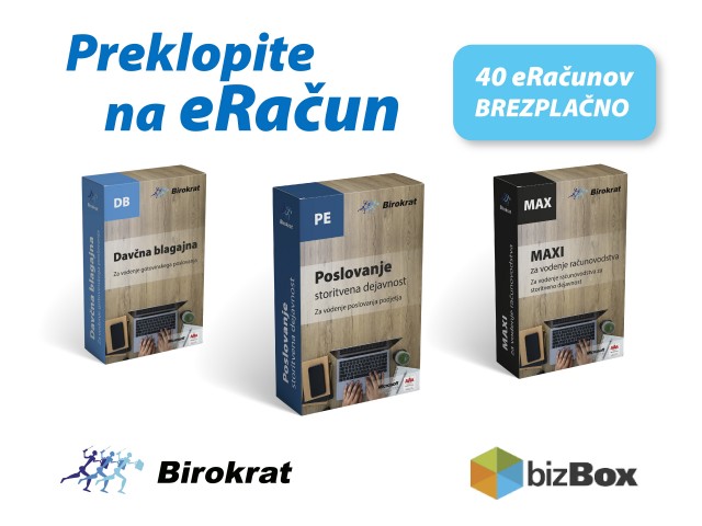 - Ugodnosti za nove uporabnike BIROKRAT in bizBox – 40 brezplačnih transakcij